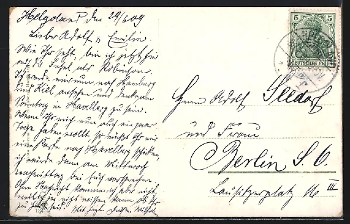 alte Ansichtskarte, gelaufen 1909, guter Zustand