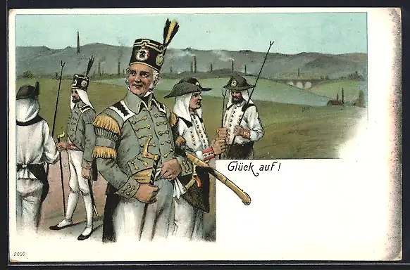 AK Heliocolorkarte, Bergleute in ihrer Uniform, Glück auf