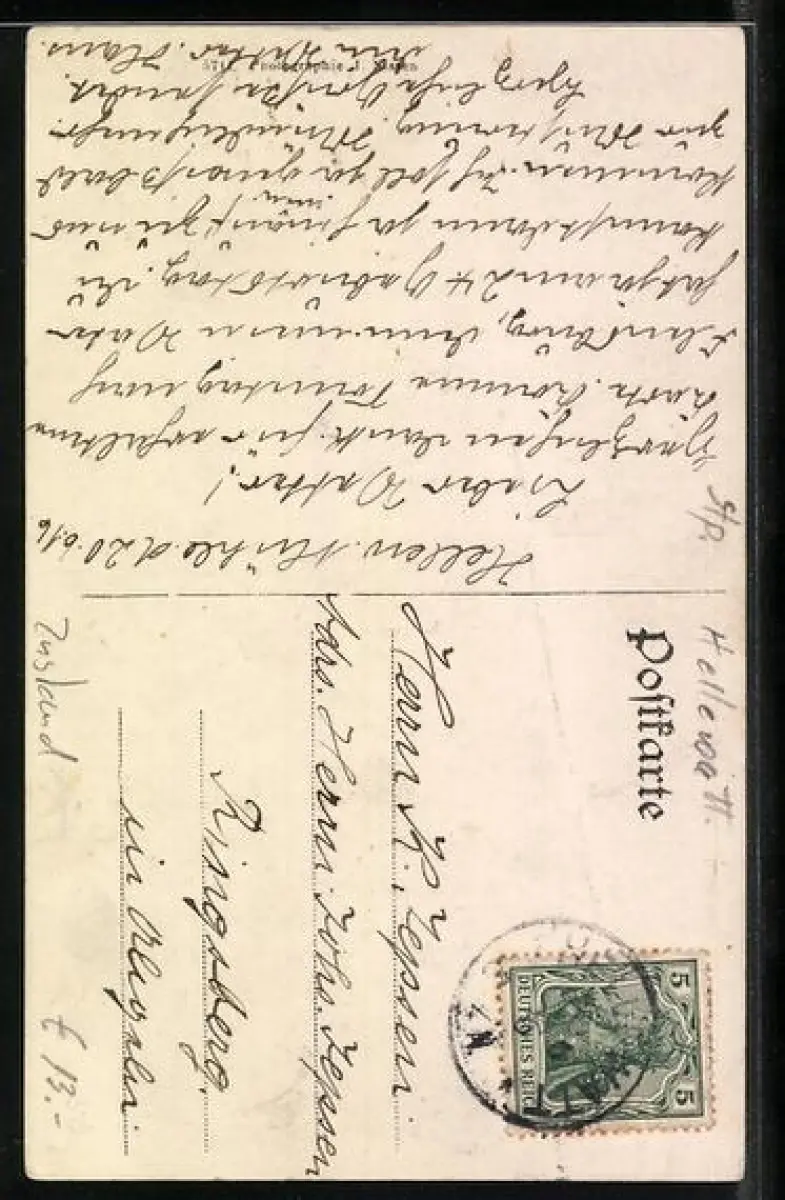alte Ansichtskarte, gelaufen, Eckknick li. unten, Bugspur li. vertikal, guter Zustand