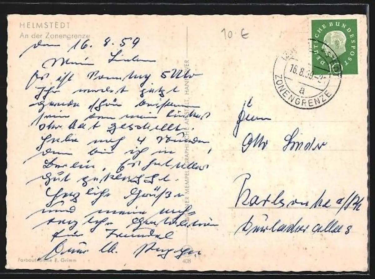gelaufen 1959, Eckknick rechts unten, guter Zustand
