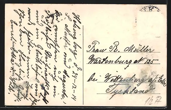 alte Ansichtskarte, gelaufen, Briefmarke entfernt, rückseitig Oberflächenschaden, Bugspur li. oben, guter Zustand