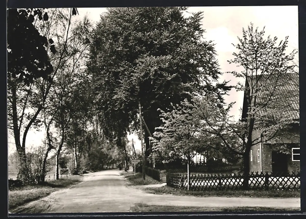 AK Hemmoor OT Westersode, Strassenpartie mit Bäumen