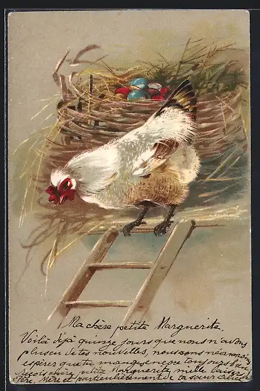 AK Henne bewacht ihr Nest voller Ostereier zu Ostern