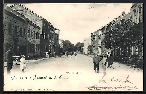 AK Hennef a. d. Sieg, Warthbrücke mit Geschäften