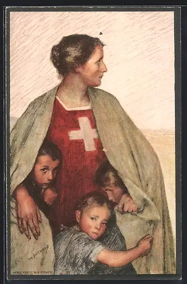 AK Henri Dunant, Schweizer Rotes Kreuz, Helvetia mit Kindern