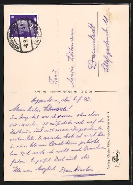 alte Ansichtskarte, gelaufen 1943, guter Zustand