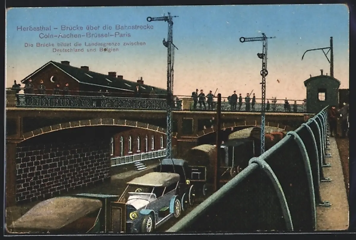 AK Herbesthal, Brücke über die Bahnstrecke Köln-Aachen-Brüssel-Paris, Auto