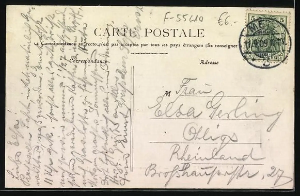 alte Ansichtskarte, gelaufen 1909, Stempelspur, guter Zustand