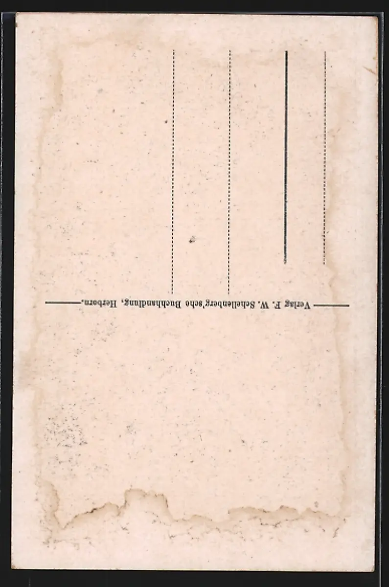 Personenbezogene Daten auf der Rückseite der Karte wurden durch blauen Textmarker unkenntlich gemacht. Die blauen Stellen sind auf die Vorderseite durchgeweicht und wirken sich negativ auf das Postkartenfoto aus