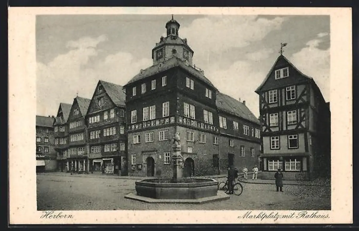 AK Herborn / Dillkreis, Marktplatz, Rathaus, Marktbrunnen