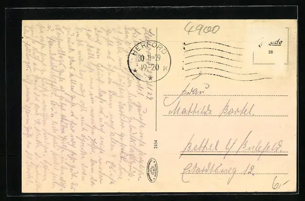 alte Ansichtskarte, gelaufen 1929, Briefmarke entfernt, Stempelspur, guter Zustand