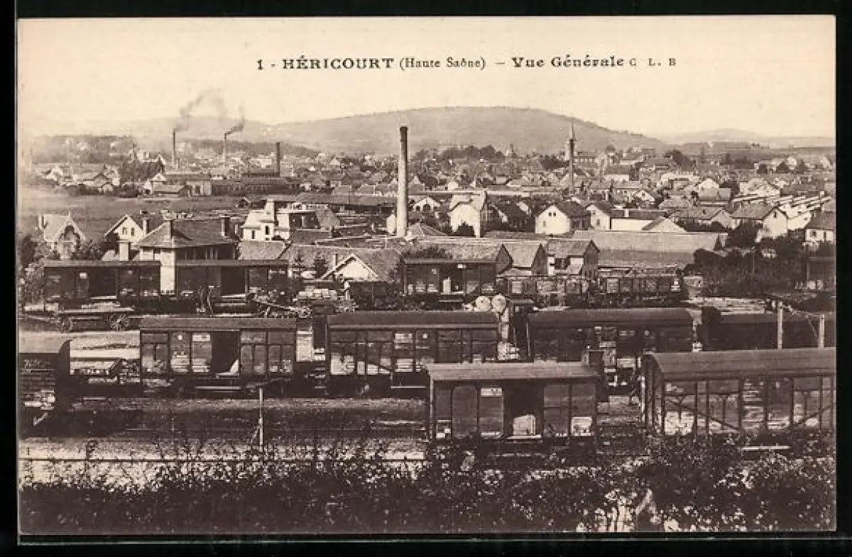 AK Héricourt /Haute Saône, Vue Générale avec wagons de train en avant-plan