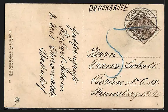 alte Ansichtskarte, gelaufen 1911, Abriebspur li. unten, guter Zustand