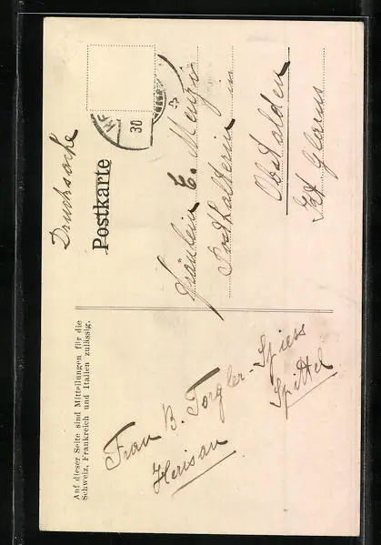 alte Ansichtskarte, gelaufen, Briefmarke entfernt, rückseitig Oberflächenschaden, guter Zustand