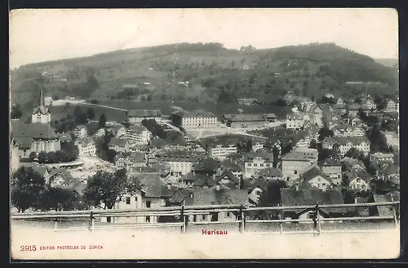 AK Herisau, Totalansicht mit Bergpanorama aus der Vogelschau
