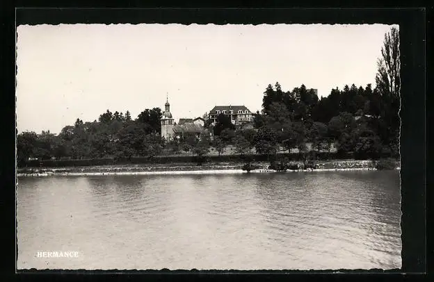 AK Hermance, Ortsansicht mit Gewässer und Kirche