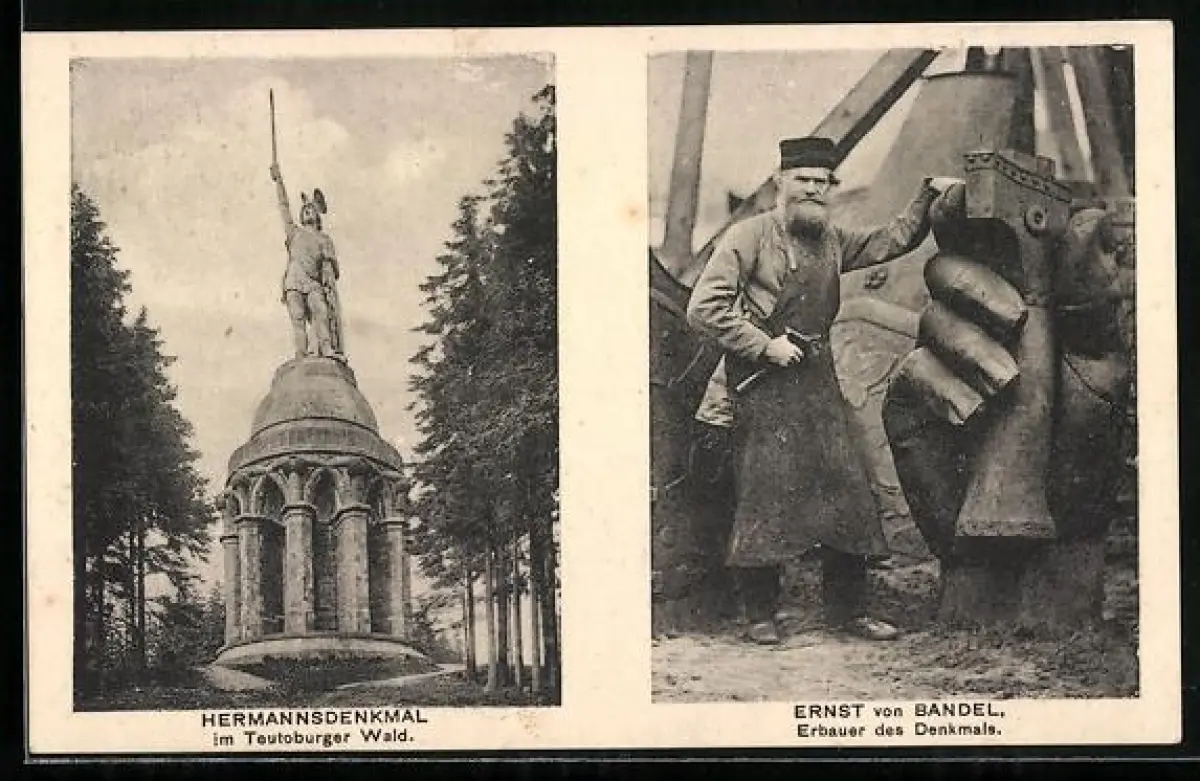 AK Hermanns-Denkmal im Teutoburger Wald und Erbauer Ernst von Bandel