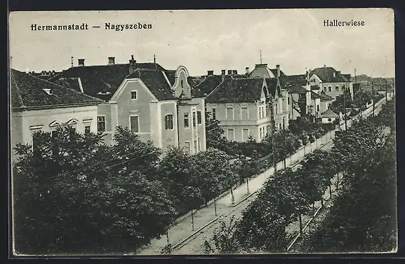 AK Hermannstadt, Strassenpartie Hallerwiese aus der Vogelschau