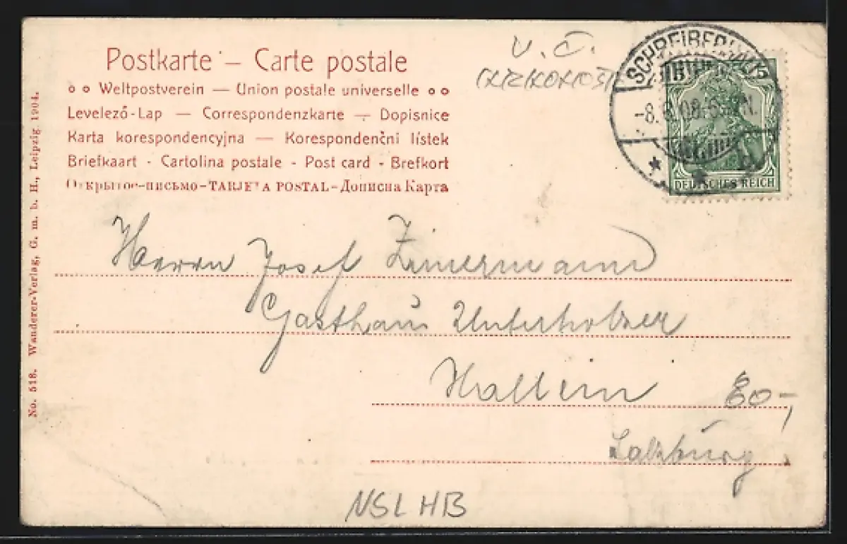 alte Ansichtskarte, gelaufen 1908, Eckknick unten rechts, guter Zustand