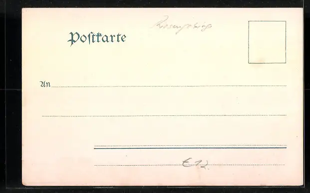 Personenbezogene Daten auf der Rückseite der Karte wurden durch blauen Textmarker unkenntlich gemacht. Die blauen Stellen sind auf die Vorderseite durchgeweicht und wirken sich negativ auf das Postkartenfoto aus
