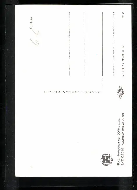 Personenbezogene Daten auf der Rückseite der Karte wurden durch blauen Textmarker unkenntlich gemacht. Die blauen Stellen sind auf die Vorderseite durchgeweicht und wirken sich negativ auf das Postkartenfoto aus