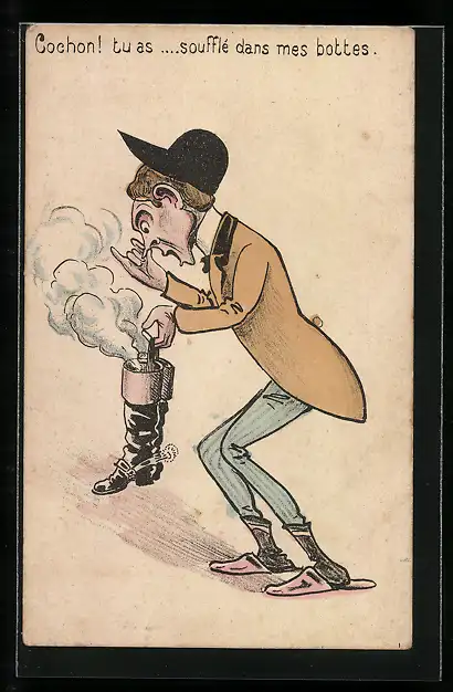 AK Herr riecht an seinen stinkenden Stiefeln, Scherz