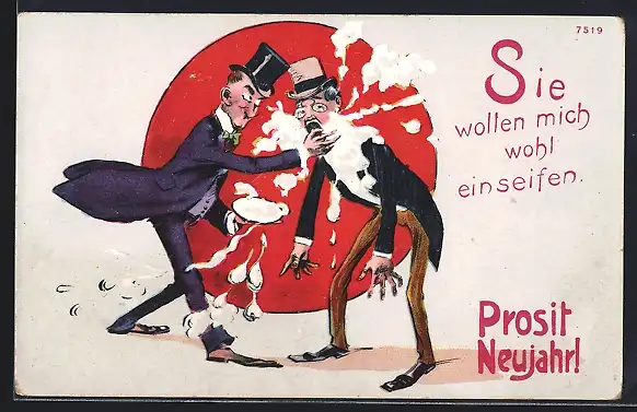 AK Herren im Frack bei handgreiflicher Auseinandersetzung mittels Seifenschaum