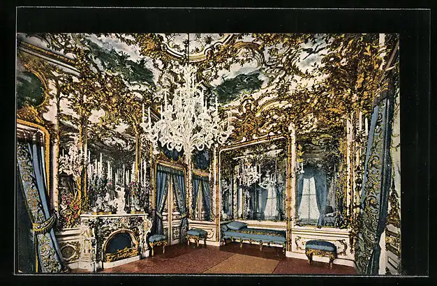 AK Herrenchiemsee, Schloss, Jagdzimmer oder hellblauer Salon, Innenansicht