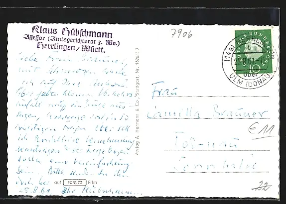 AK Herrlingen in Württ., Gesamtansicht, Unterkunftshaus Hübschmann