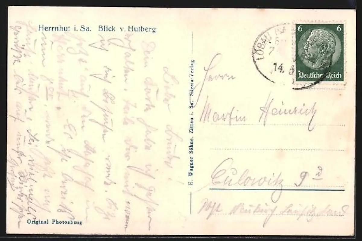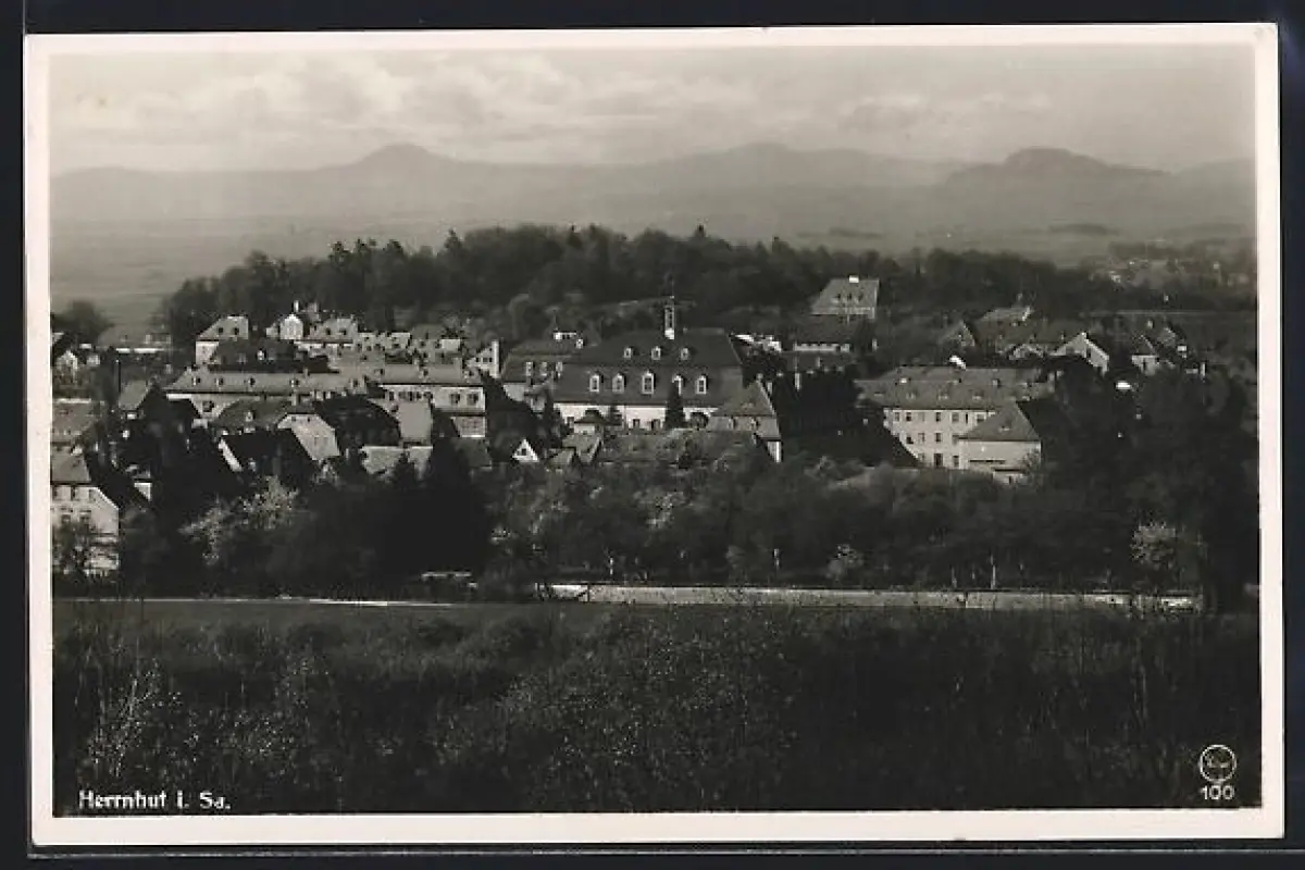 AK Herrnhut i. Sa., Blick vom Hutberg auf den Ort