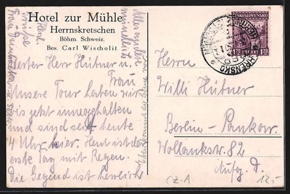 AK Herrnskretschen /Böhm. Schweiz, Hotel zur Mühle, Bes. Carl Wischolit