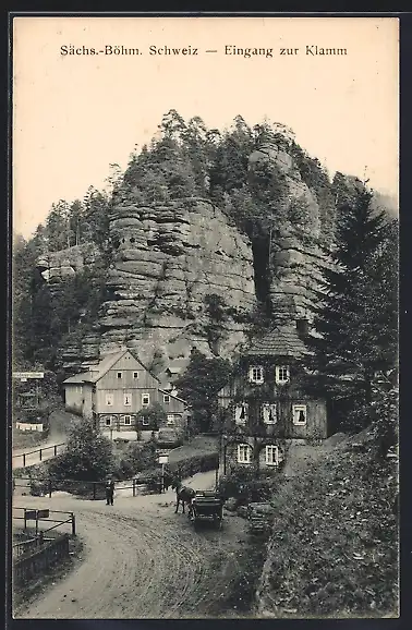 AK Herrnskretschen /Sächs.-Böhm. Schweiz, Eingang zur Klamm