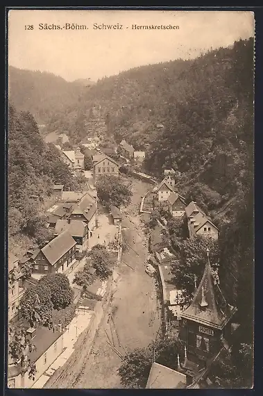 AK Herrnskretschen /Sächs.-Böhm. Schweiz, Ortsansicht aus der Vogelschau