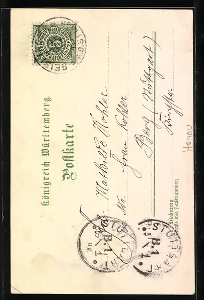 alte Ansichtskarte, gelaufen, Stempeldurchbruch oben re., guter Zustand