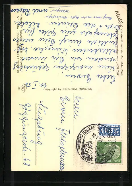 gelaufen 1956, Eckknicke links u. rechts oben, guter Zustand