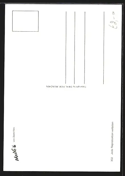 Personenbezogene Daten auf der Rückseite der Karte wurden durch blauen Textmarker unkenntlich gemacht. Die blauen Stellen sind auf die Vorderseite durchgeweicht und wirken sich negativ auf das Postkartenfoto aus