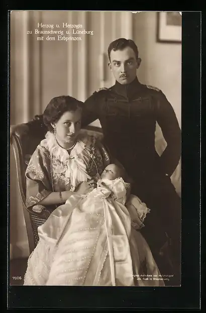 AK Herzog Ernst August von Braunschweig in Husarenuniform mit Gemahlin Viktoria Luise und dem Erbprinzen
