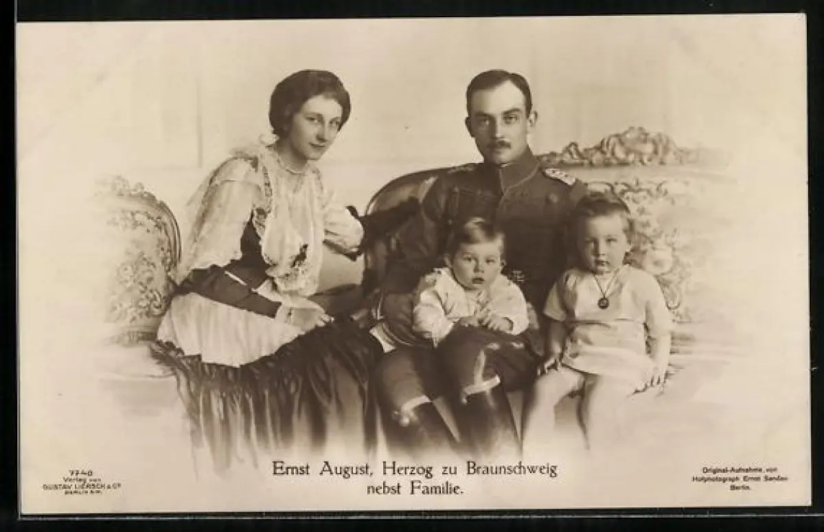 AK Herzog Ernst August von Braunschweig in Uniform mit seiner Familie