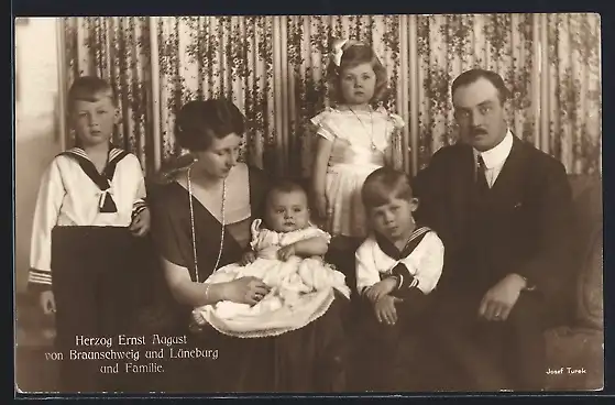 AK Herzog Ernst August von Braunschweig mit Herzogin Viktoria Luise und den Kindern