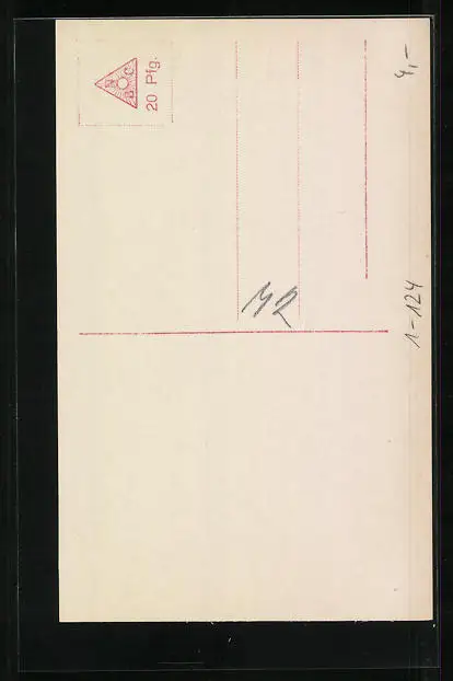 Personenbezogene Daten auf der Rückseite der Karte wurden durch blauen Textmarker unkenntlich gemacht. Die blauen Stellen sind auf die Vorderseite durchgeweicht und wirken sich negativ auf das Postkartenfoto aus