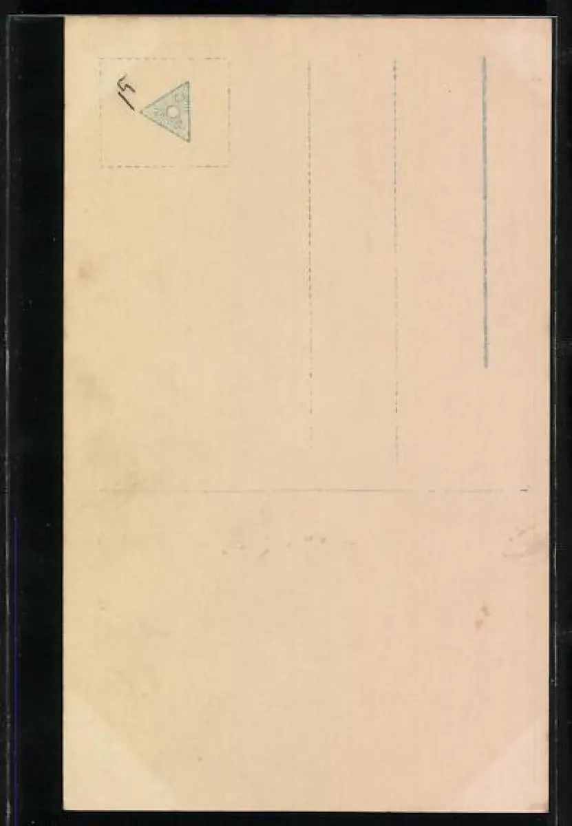 Personenbezogene Daten auf der Rückseite der Karte wurden durch blauen Textmarker unkenntlich gemacht. Die blauen Stellen sind auf die Vorderseite durchgeweicht und wirken sich negativ auf das Postkartenfoto aus