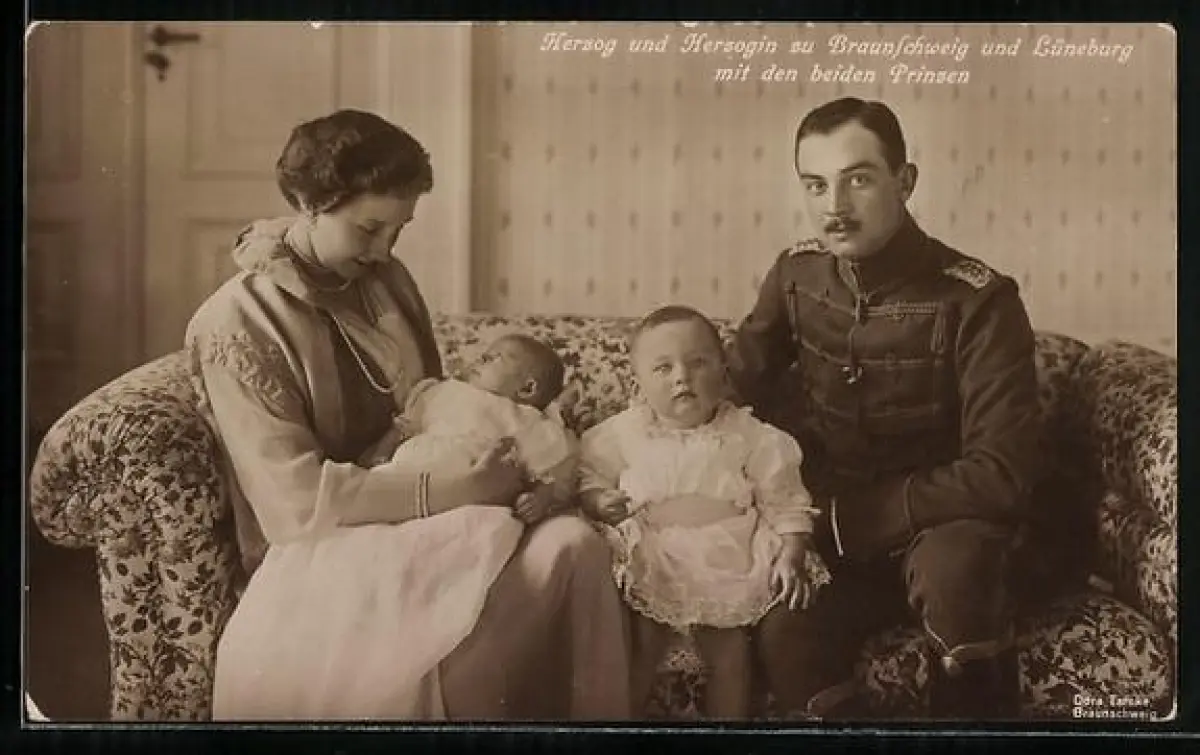 AK Herzog und Herzogin von Braunschweig mit ihren beiden Söhnen