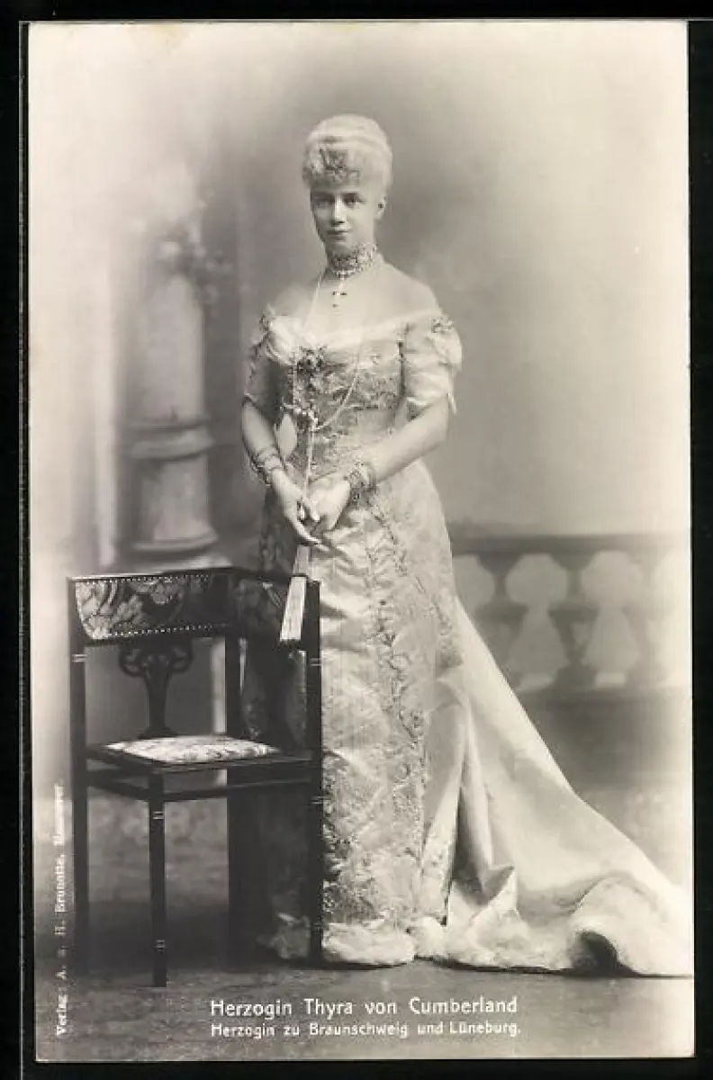 AK Herzogin Thyra von Cumberland, Herzogin zu Braunschweig u. Lüneburg im Kleid mit Fächer