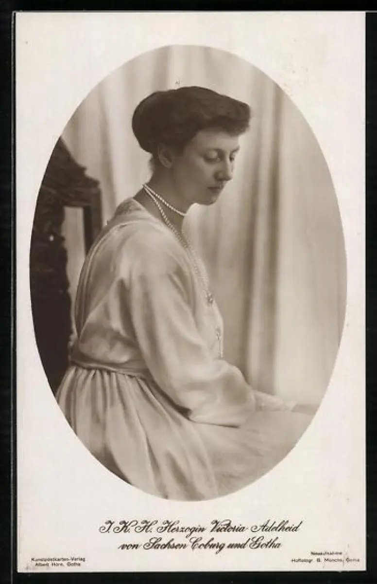 AK Herzogin Victoria Adelheid von Sachsen-Coburg-Gotha trägt eine Perlenkette
