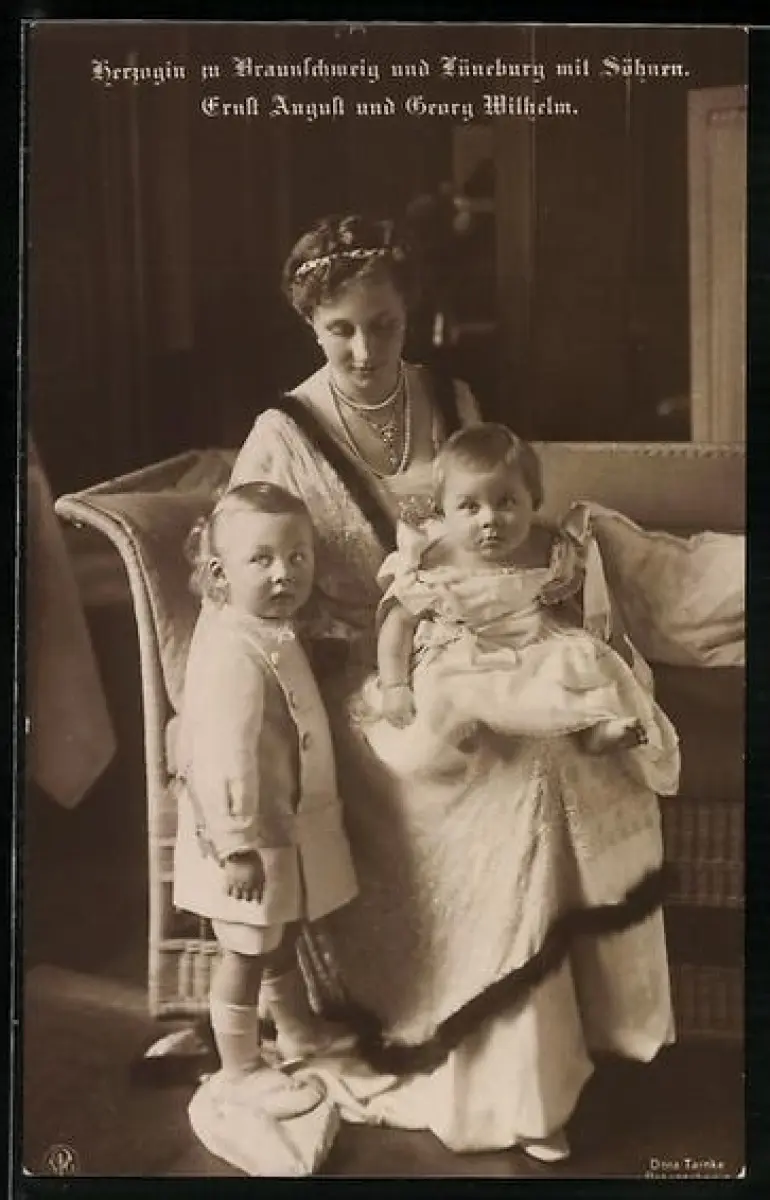 AK Herzogin zu Braunschweig u. Lüneburg mit Söhnen Ernst August und Georg Wilhelm
