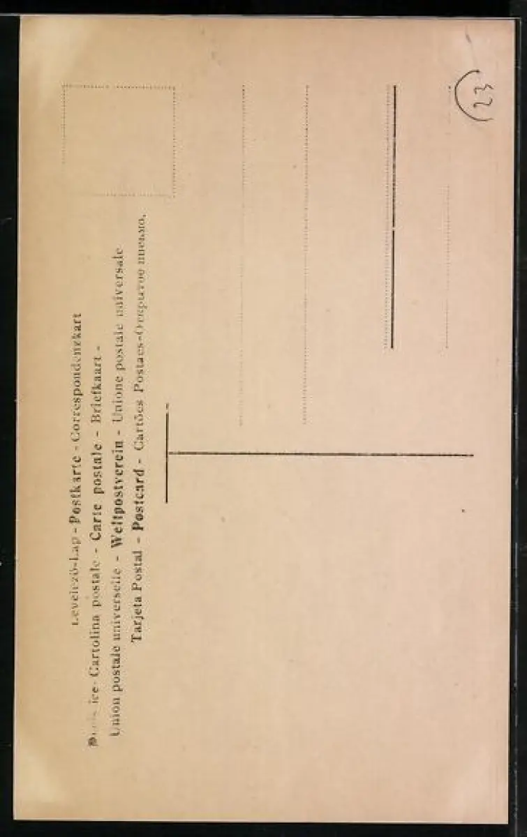 Personenbezogene Daten auf der Rückseite der Karte wurden durch blauen Textmarker unkenntlich gemacht. Die blauen Stellen sind auf die Vorderseite durchgeweicht und wirken sich negativ auf das Postkartenfoto aus