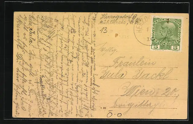 alte Ansichtskarte, gelaufen 1910, Eckknicke oben, guter Zustand
