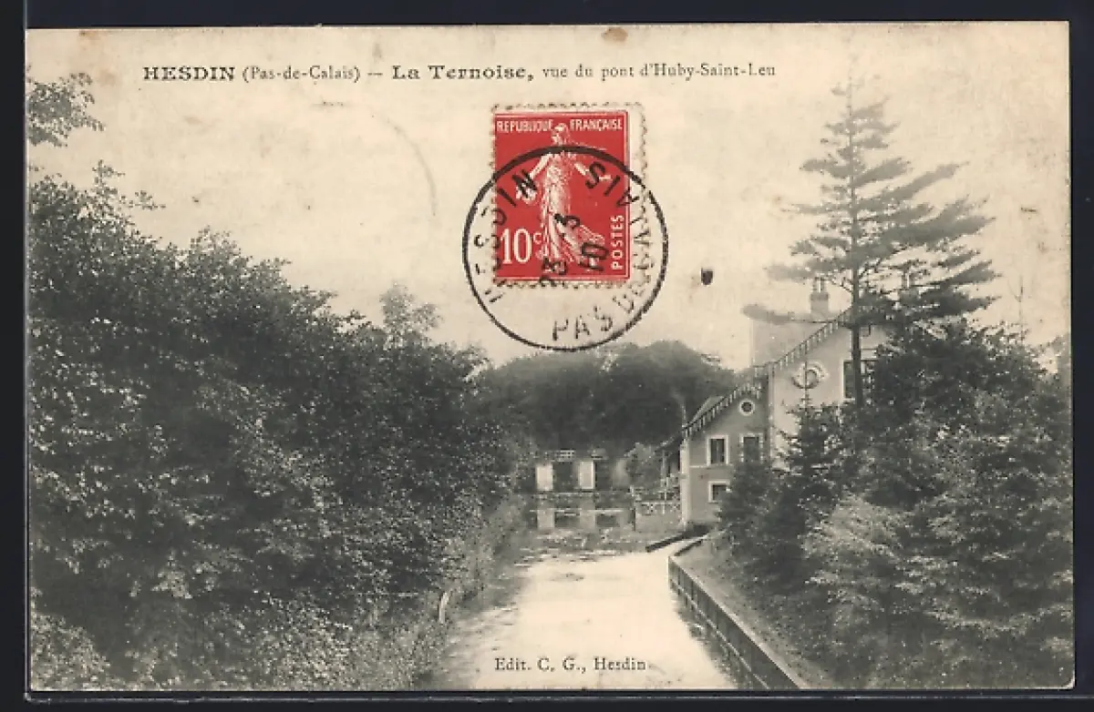AK Hesdin /Pas-de-Calais, La Ternoise vue du pont d`Huby-Saint-Lien