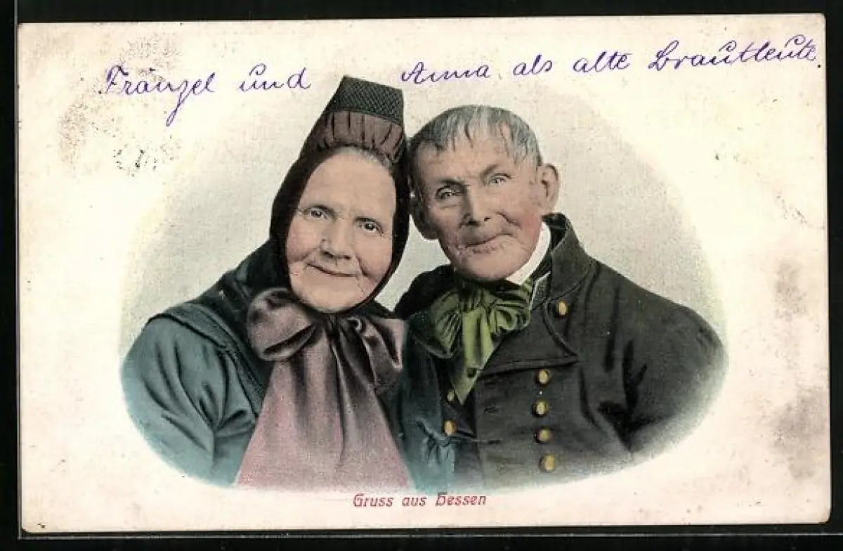 AK Hessen, Altes Bauernpaar in hessischer Tracht