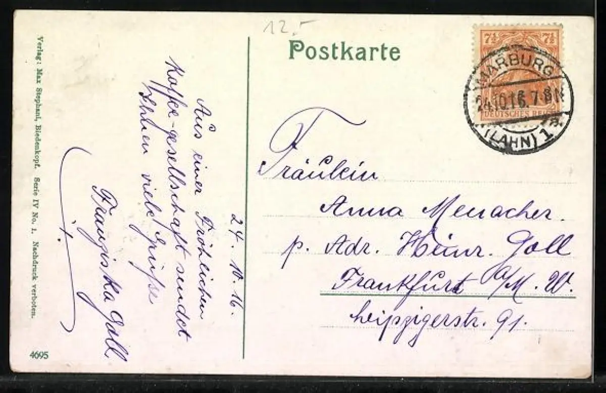 alte Ansichtskarte, gelaufen 1916, Stempelspur, guter Zustand